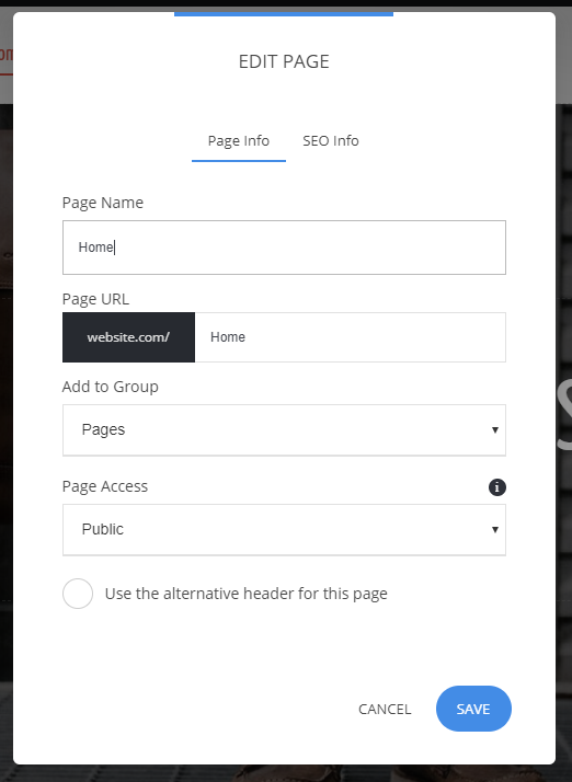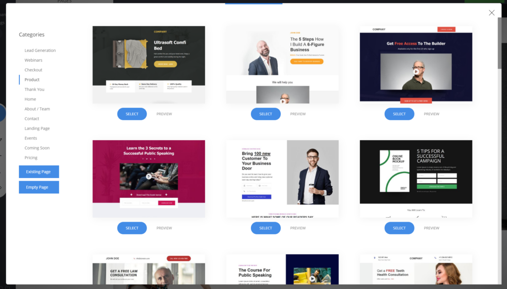 You can also click on Empty Page to start from scratch or Existing Page to select a page from your current website or template as a reference.