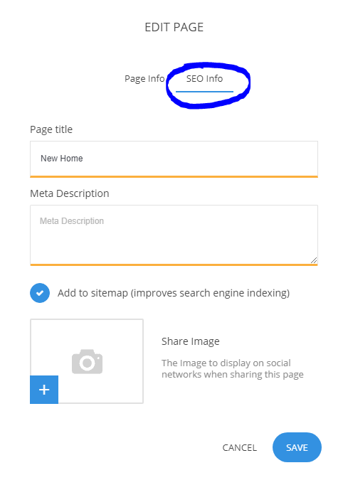 • Add to Sitemap – this adds or removes the page from the Sitemap.xml that helps Search Engines to index (find) your page. If the page is still in progress make sure that it is removed from the Sitemap.