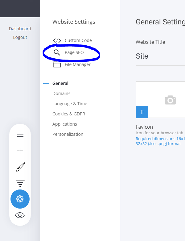 To get to Page SEO, click on Website Settings -> Page SEO.
